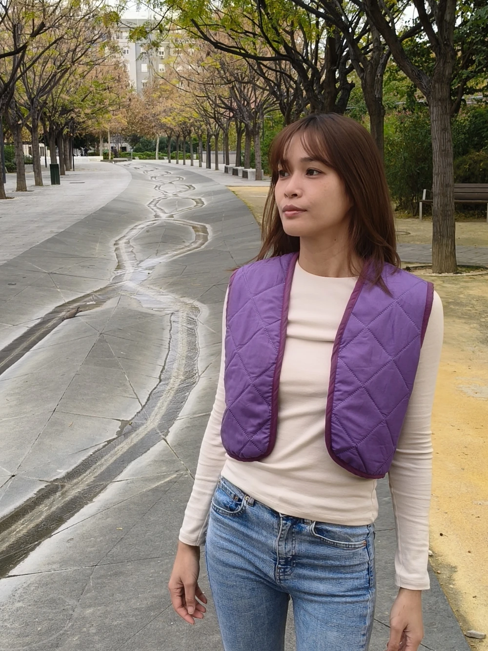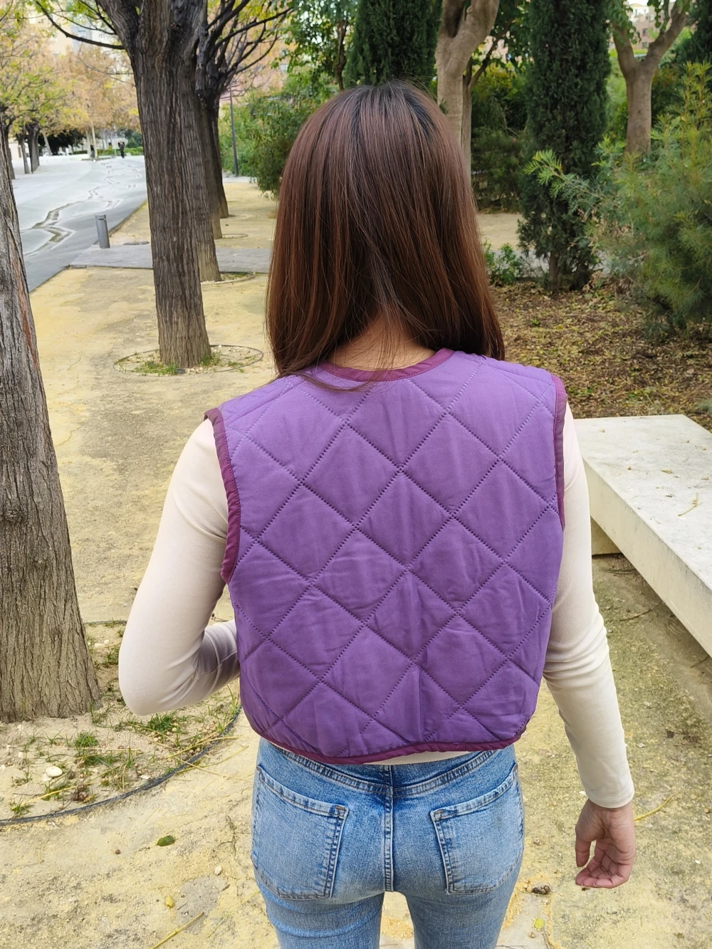 Reversible gilet made from a second-hand quilt.