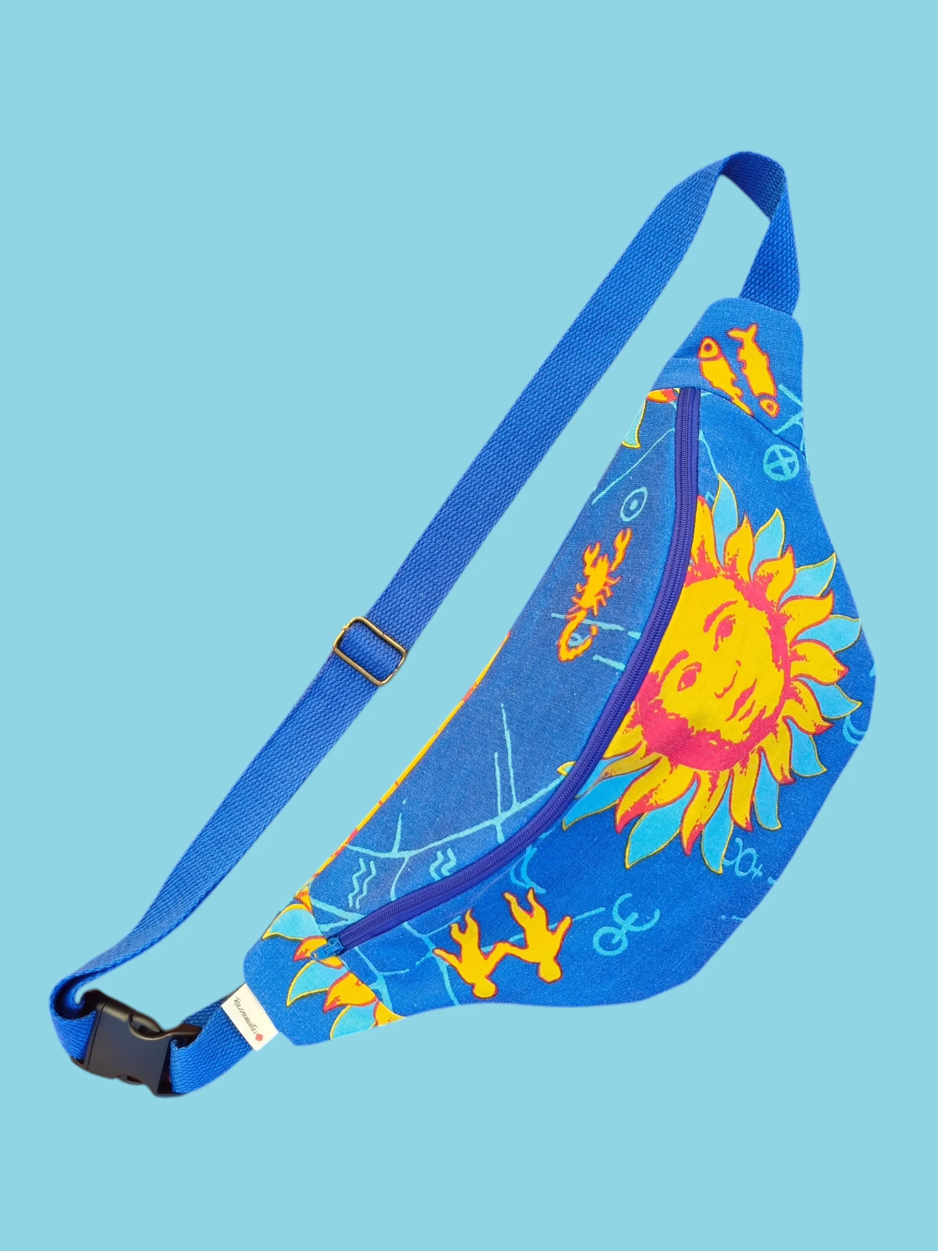 Riñonera confeccionada con tela recuperada, diseñada para unir estilo y sostenibilidad.